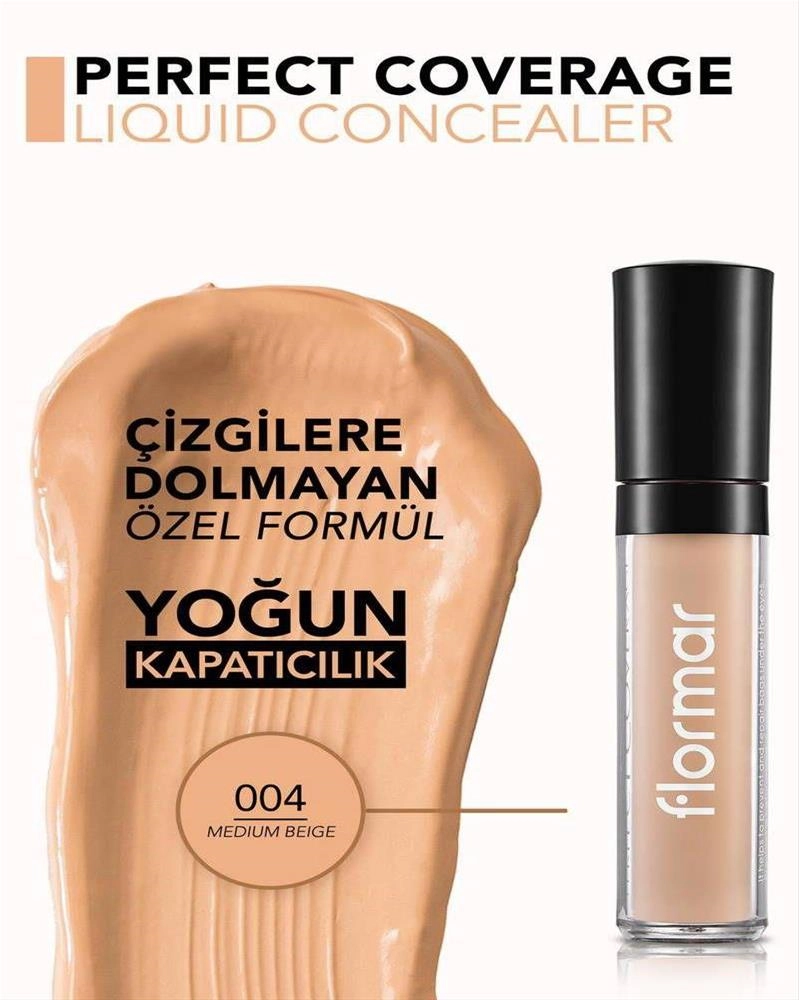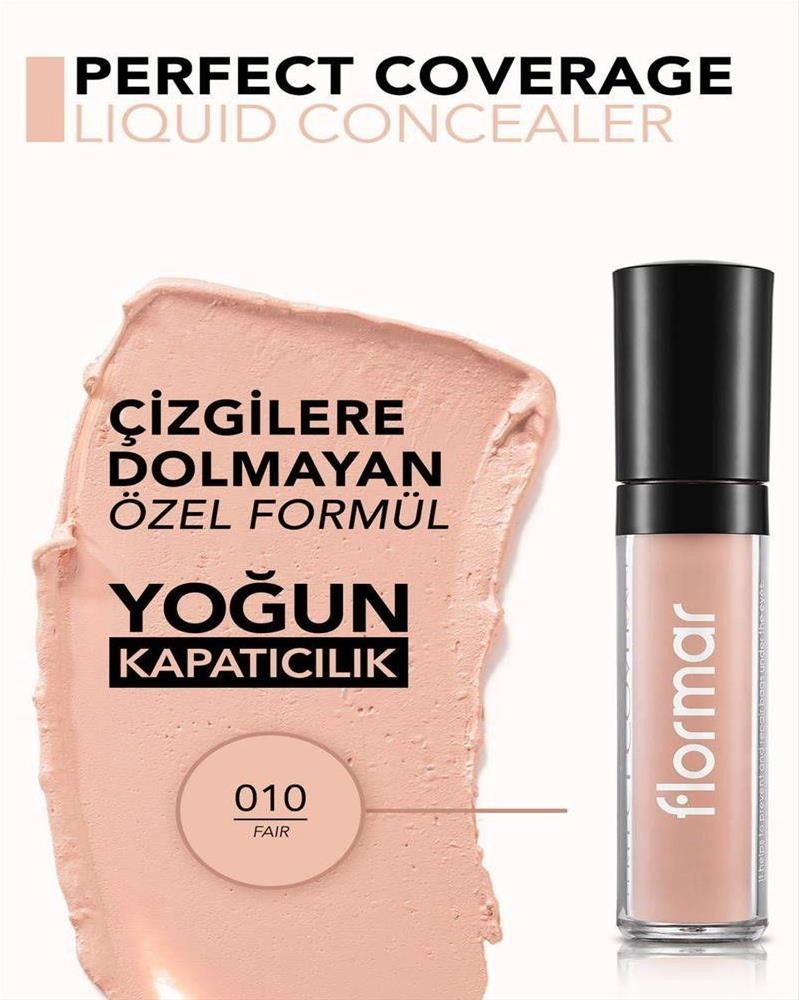 کانسیلر مایع پرفکت کاوریج فلورمار با انواع پوستها سازگار بوده و با قابلیت پخش شدن مناسبی که دارد، به راحتی تیرگی های دور چشم، جای جوش، لک های روی صورت و سایر نواقص پوستی را پوشش میدهد. این کانسیلر فاقد چربی است و می تواند در مدت زمان استفاده رطوبت پوست را حفظ کند.